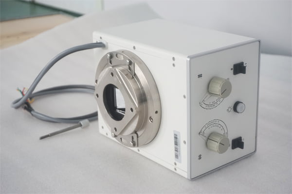 نشانگر نور مرئی (Light Beam Diaphragm): یکی از اجزای حیاتی کولیماتور رادیولوژی. این سیستم شامل یک لامپ (معمولاً هالوژن یا LED) و یک آیینه است که پرتو نور مرئی را دقیقاً از همان مسیر و با همان ابعاد پرتو اشعه ایکس روی بدن بیمار میتاباند. این نور، “سایه میدان پرتو” را نشان میدهد و به اپراتور امکان میدهد قبل از تابش اشعه ایکس، به دقت ناحیه مورد نظر را قاببندی و تنظیم کند.